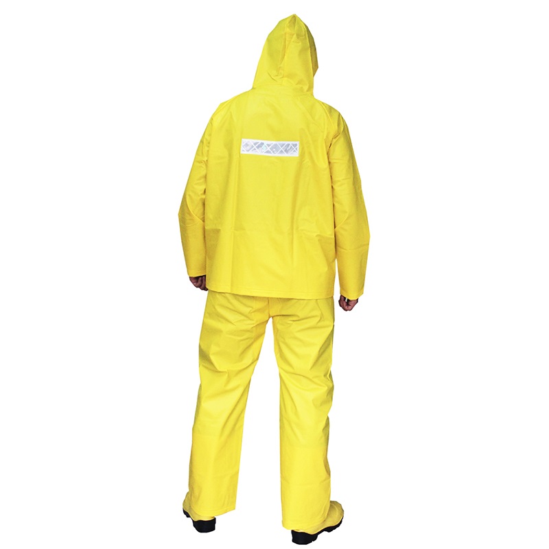 Los conjuntos impermeables están fabricados bajo la norma NTC 4615 en tela vinílica compacta con soporte textil en poliéster que brinda mayor comodidad y resistencia en las situaciones más exigentes. Están elaborados mediante el proceso de electro sellado que garantiza una impermeabilidad del 100%.