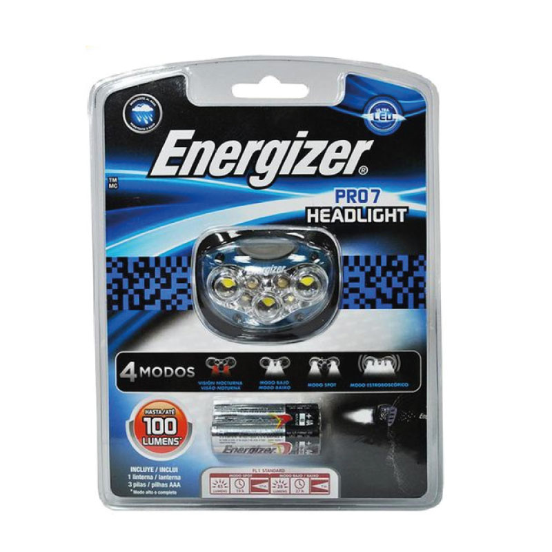 La linterna Manos Libres Energizer® Industrial de 400 lúmenes cuenta con cabeza giratoria para luz direccional, un alcance de hasta 85 metros y es resistente al agua (IPX4).