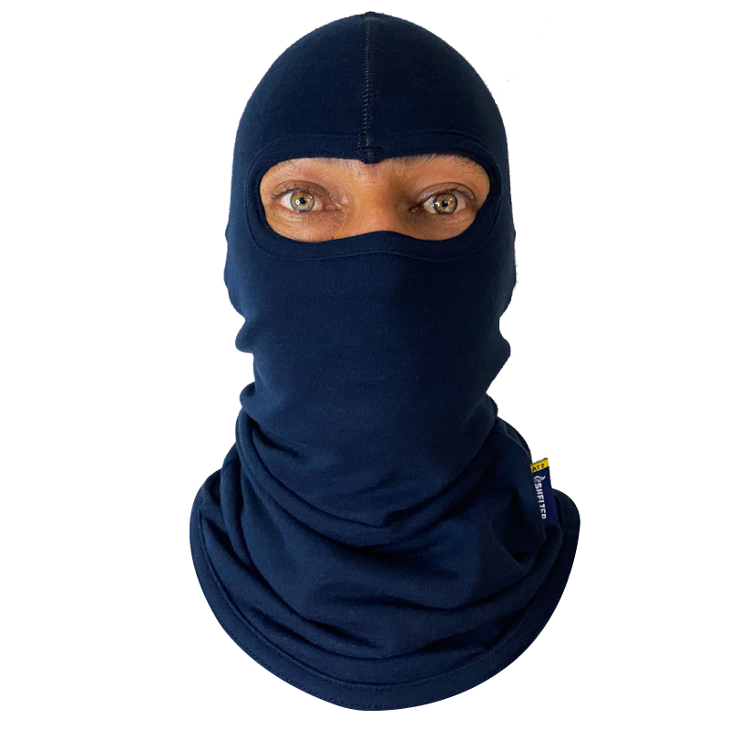 Las balaclavas ignifugas o balaclavas ARC son elementos de protección personal cuyo objetivo principal es salvaguardar el rostro y cuello de las personas ante riesgos como el arco eléctrico y fuego repentino. Las balaclavas Shelter modelo BAL1FR14-NY ofrecen un ATPV de 14 cal/cm².