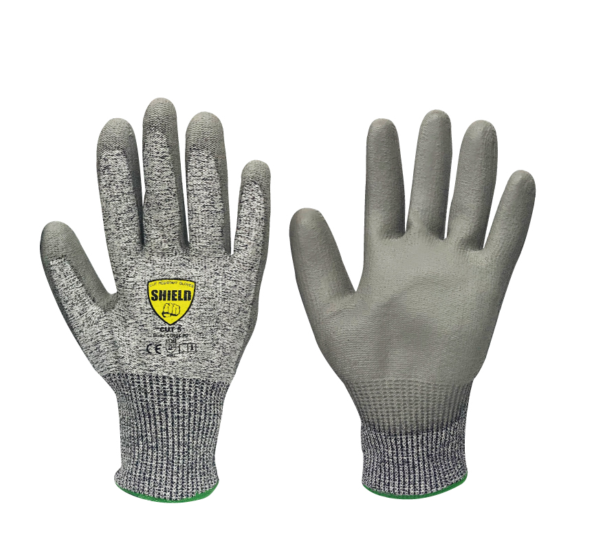 Los guantes anticorte son un elemento de proteccion personal (EPP) fundamental en el sector industrial. Están fabricados en HPPE con resistencia al corte nivel 5. Los guantes cuentan con un recubrimiento en Poliuretano en la palma que brinda una excelente protección, agarre y destreza.